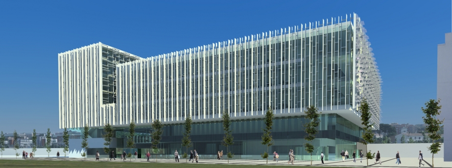 Els volums així conformats s’adapten, el mes alt, al programa definit pels àmbits d’auditori, biblioteca, dos plantes de docència i dos nivells mes de recerca i investigació, i el segon, en planta baixa als espais de cafeteria, admissions CCEE, hemodiàlisi i la base del SEM, la primera planta per al espai de reserva del CAP i els altres tres nivells per a tot el desplegament de les CCEE.
