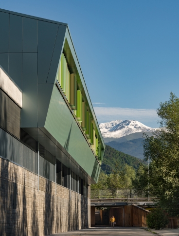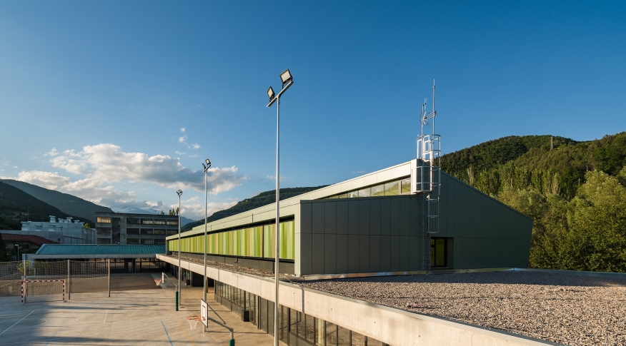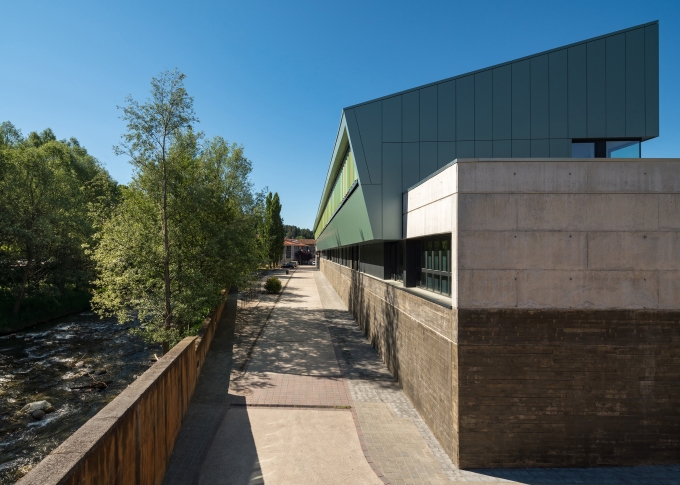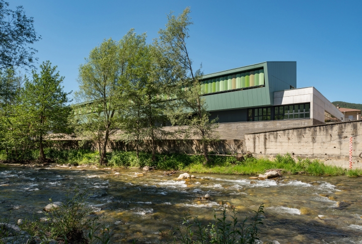 La geometria de la secció principal, a dos aigües de diferent pendent, s'incorpora als referents arquitectònics i paisatgístics de l'entorn: les vores del riu Freser, el nucli antic de la vila, església parroquial, etc.