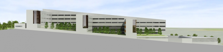 La volumetria caracteritzada per tres cossos principals travessers i un altre longitudinal, articulats en els seus punts de trobada per serveis de control i assistència i els nuclis de comunicació, permet establir una diferenciació d’aquelles activitats d’us intern i permet alhora ubicar cap als espais de façana totes les altres d’us públic.